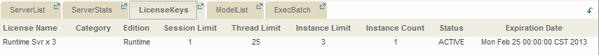 License Keys Tab, a tab page in Server Manager, allows you to manage license keys for all TestOptimal Runtime servers. You can add, remove or edit license keys as well as check for license key usage.