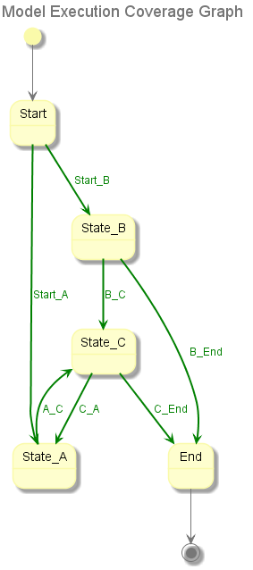 When model is completed, we are ready to generate test cases from it. Test cases are generated by traversing the states and transitions to achieve the desired coverage using algorithms, aka model sequencers.